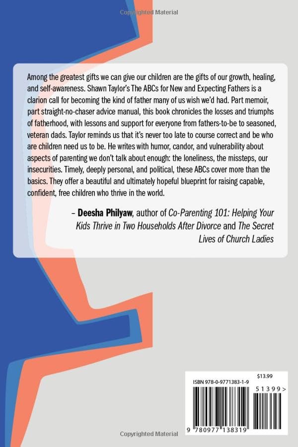"Among the greatest gifts we can give our children are the gifts of our growth, healing, and self-awareness. Shawn Taylor's The ABCs for New and Expecting Fathers is a clarion call for becoming the kind of father many of us wish we'd had. Part memoir, part straight-no-chaser advice manual, this book chronicles the losses and triumphs of fatherhood, with lessons and support for everyone from fathers-to-be to seasoned, veteran dads. Taylor reminds us that it's never too late to course correct and be who are children need us to be. He writes with humor, candor, and vulnerability about aspects of parenting we don't talk about enough: the loneliness, the missteps, our insecurities. Timely, deeply personal, and political, these ABCs cover more than the basics. They offer a beautiful and ultimately hopeful blueprint for raising capable, confident, free children who thrive in the world." - Deesha Philyaw author of Co-Parenting 101: Helping Your Kids Thrive in Two Households After Divorce and The Secret Lives of Church Ladies