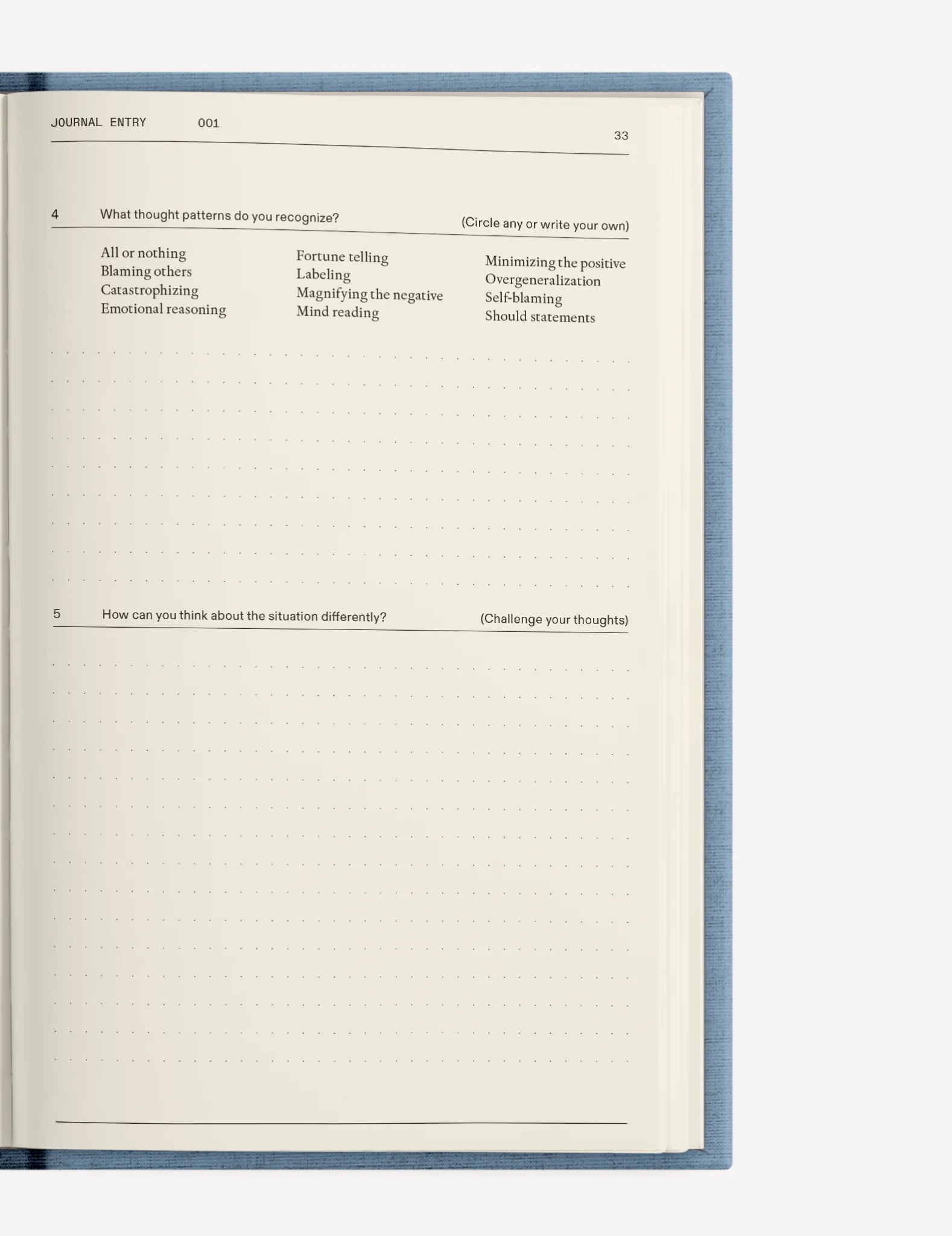 Reduce anxiety, manage stress, and become more aware of your thought patterns with this easy-to-use, guided notebook. Utilizing Cognitive Behavioral Therapy, a rigorously-tested and widely-used treatment, you’ll develop the skills to identify, challenge, and change unhelpful thought patterns so you can feel better.