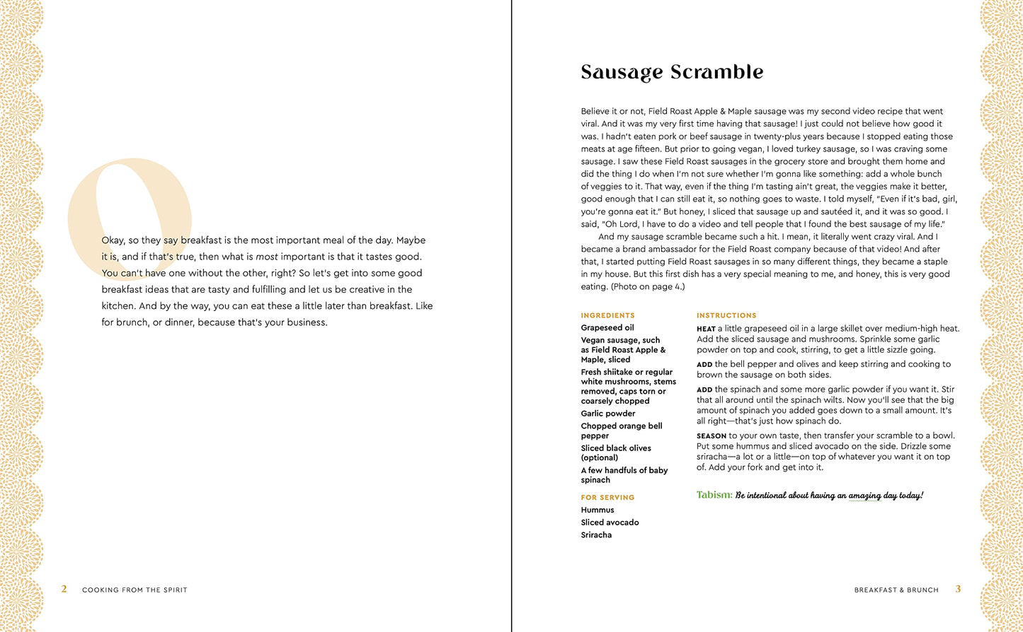 Cooking from the Spirit isn't just for vegans; it's for anyone interested in plant-based eating and all lovers of food, plus the legion of Tabitha Brown fans who want to invite her cooking and warm inspiration into their lives. As she tells readers, "Honey, now let's go on and get to cooking from the spirit. Yes? Very good!"