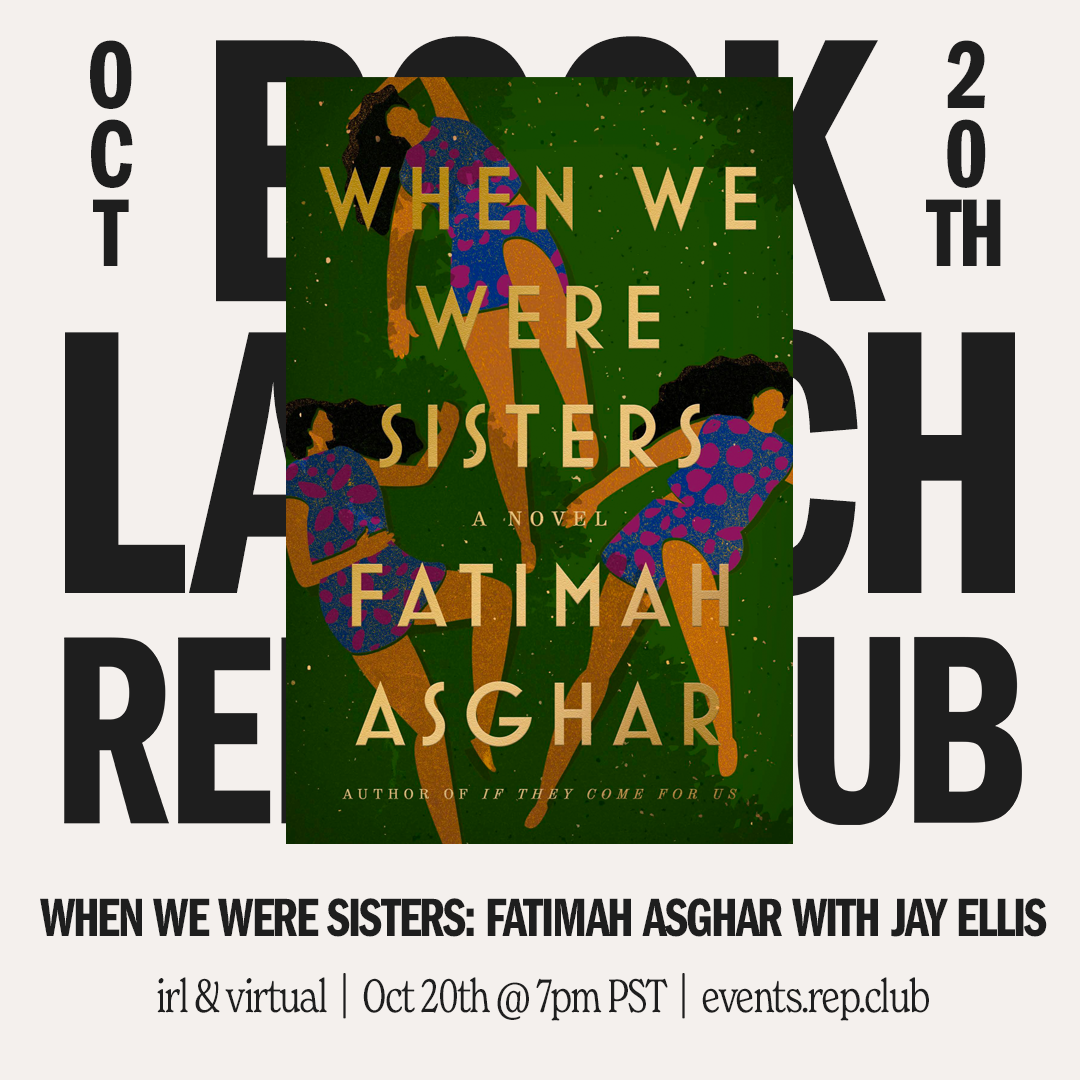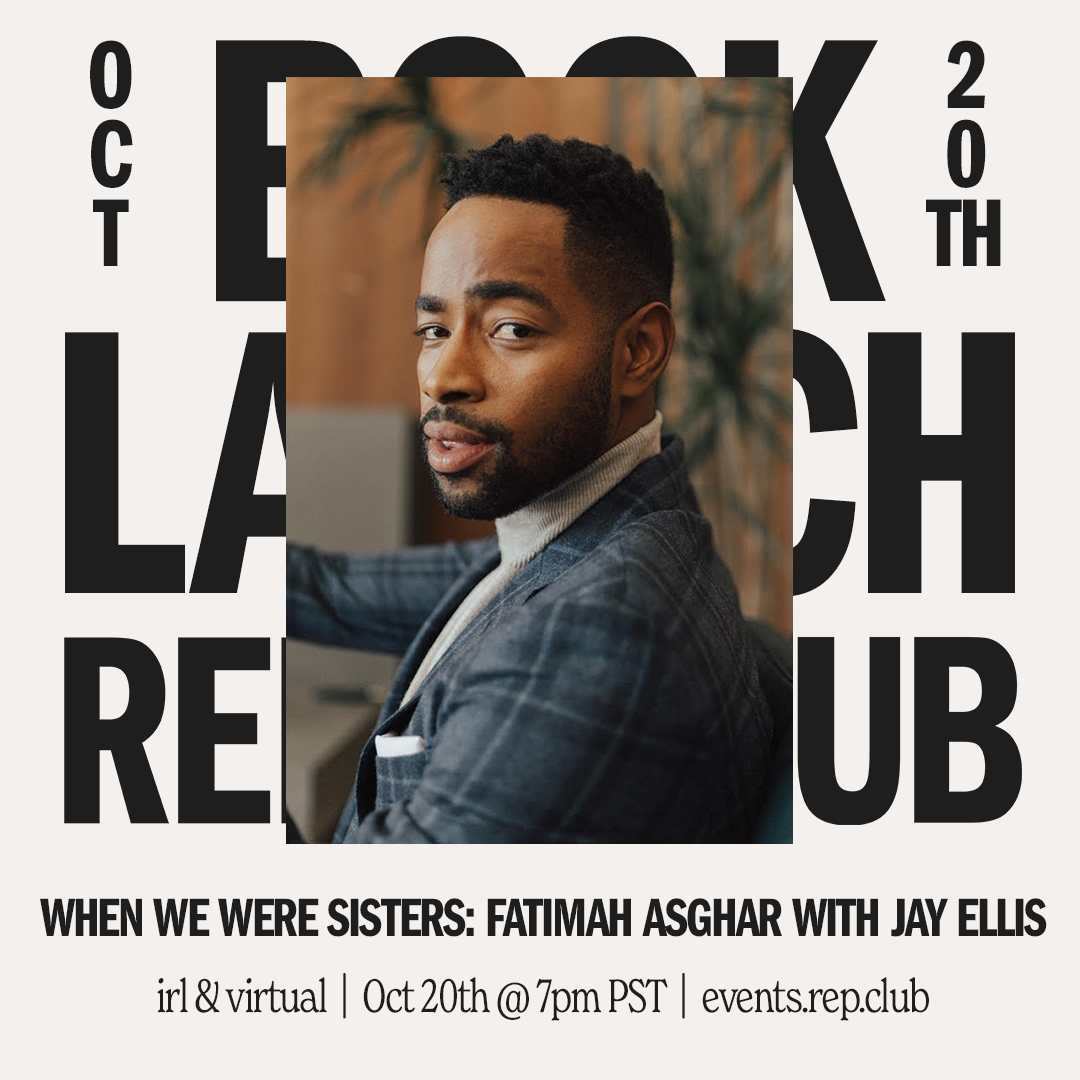 WHO & WHAT: An IRL & Virtual EVENT w/ poet, filmmaker, educator, + performer Fatimah Asghar alongside actor, director, + producer Jay Ellis, discussing Fatimah's newest book When We Were Sisters at Reparations Club.