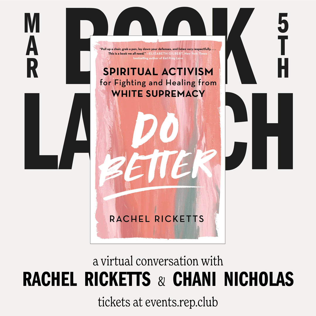 WHO & WHAT: A VIRTUAL EVENT w/ racial justice disruptor Rachel Ricketts with author and astrologist Chani Nicholas in discussion about Rachel's new book, Do Better: Spiritual Activism for Fighting & Healing from White Supremacy, addressing white supremacy, and intersectional spirituality