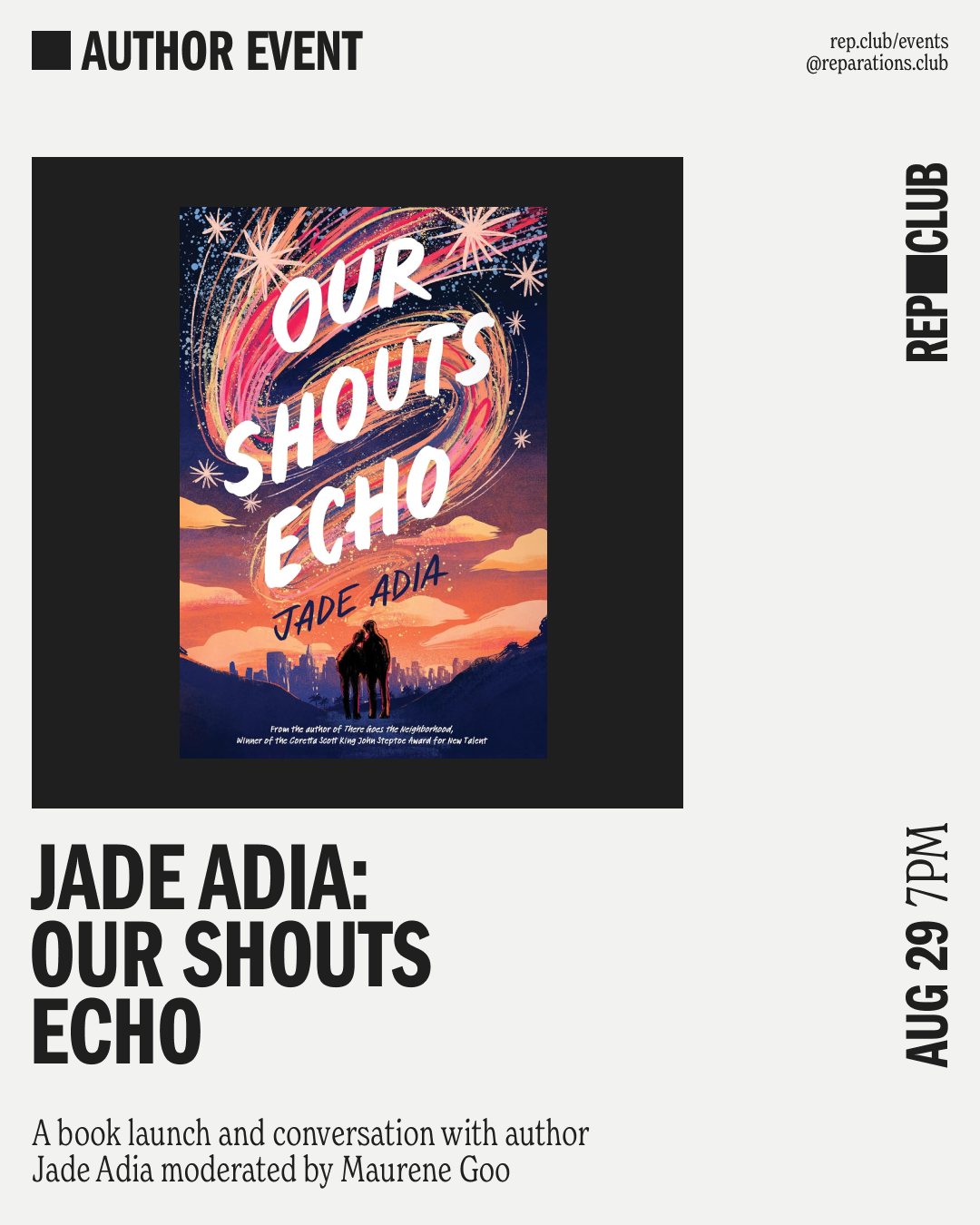 WHO & WHAT: Join us for an IRL EVENT with author of There Goes the Neighborhood and winner of the 2024 Coretta Scott King-John Steptoe New Talent Award, Jade Adia, as we discuss her newest YA novel set right here in LA, Our Shouts Echo. Jade will be joined in conversation with fellow YA author, Maurene Goo.