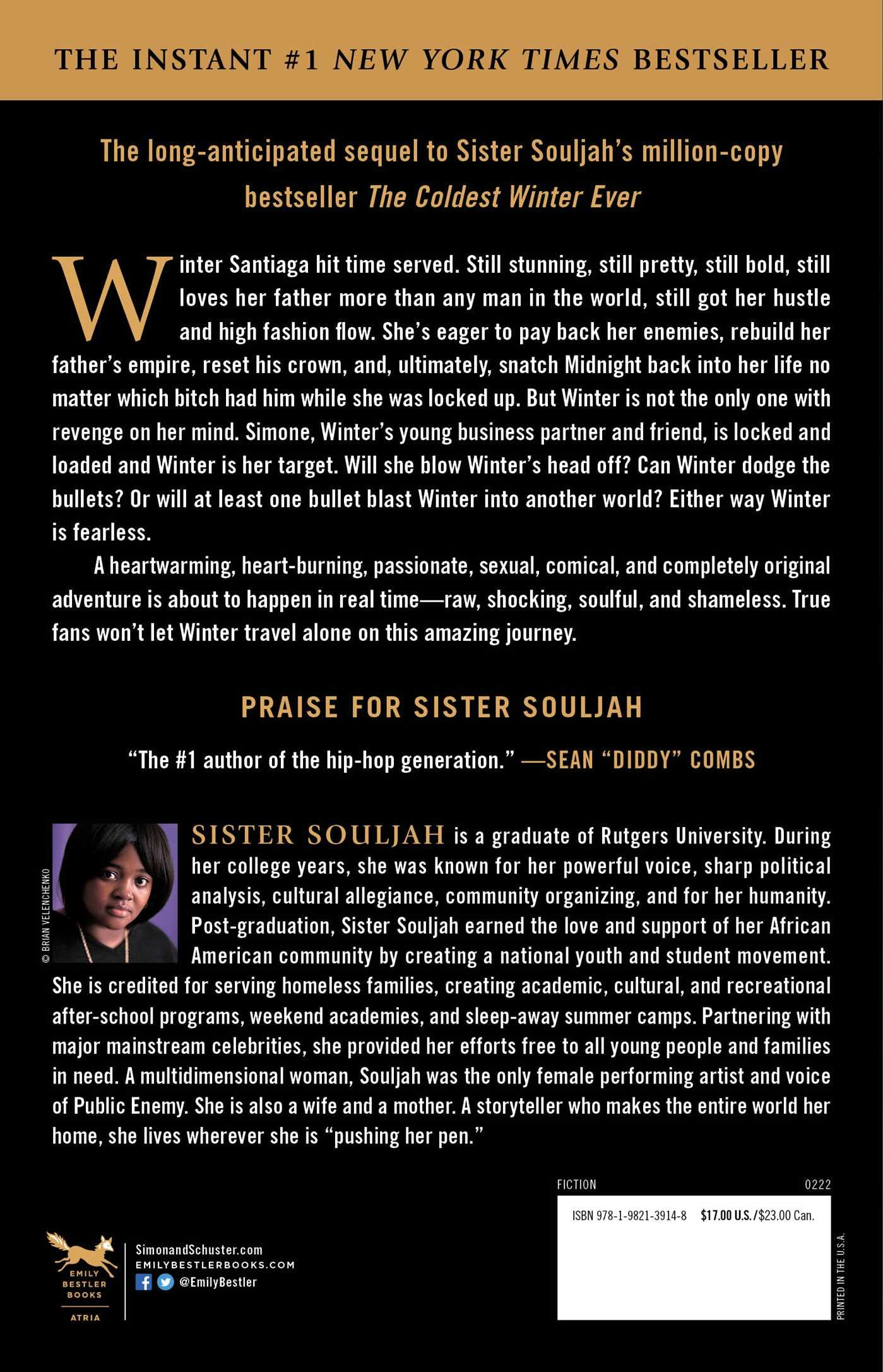 Twenty years ago, Sister Souljah’s debut novel, The Coldest Winter Ever, became a bestselling cultural phenomenon. Fans fell in love with the unforgettable Winter Santiaga, daughter of a prominent Brooklyn drug-dealing family, who captivated her lovers, friends, and enemies with her sexy street smarts. For two decades, fans have begged for answers about what happened to Winter. Now all is revealed in Sister Souljah’s page-turning sequel, filled with her trademark passion, danger, temptation, and adventure. With her jail sentence coming to a close, Winter is ready to step back into the spotlight and reclaim her throne.