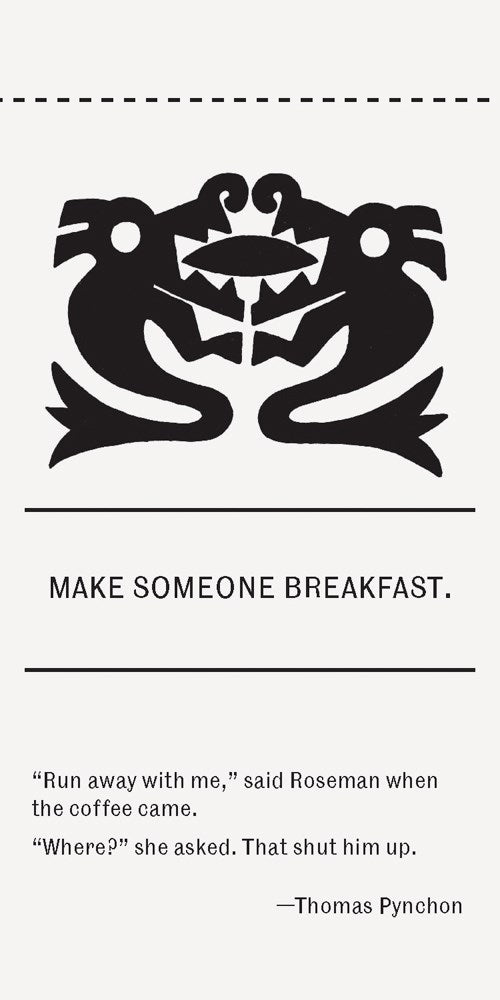Featuring the kind of ingenious, charming design you expect from a Jason Fulford and Tamara Shopsin project, Offline Activities is designed as a coupon book with tear-out pages, with one inspirational suggestion and quote per page. You are encouraged to physically do the activity and rip the page out of the book as proof. If you do one offline activity per week, the book will last a year. Offline Activities is a delightfully analog, pleasantly practical guide to shaking up your offscreen life.