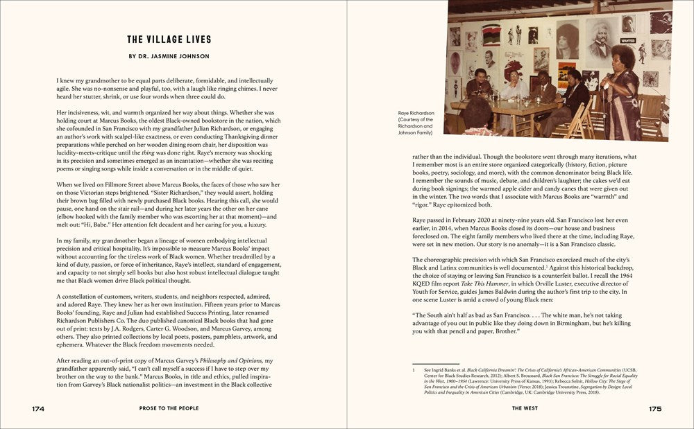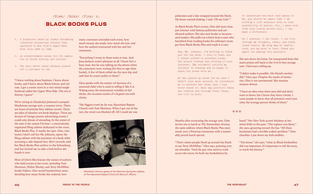 Traversing teeming metropolises and tiny towns, Prose to the People explores these spaces, chronicling the Black bookstore's past and present lives. Combining narrative prose, eye-catching photography, one-on-one interviews, original essays, and specially curated poetry, Prose to the People is a reader's road trip companion to the world of Black books.
