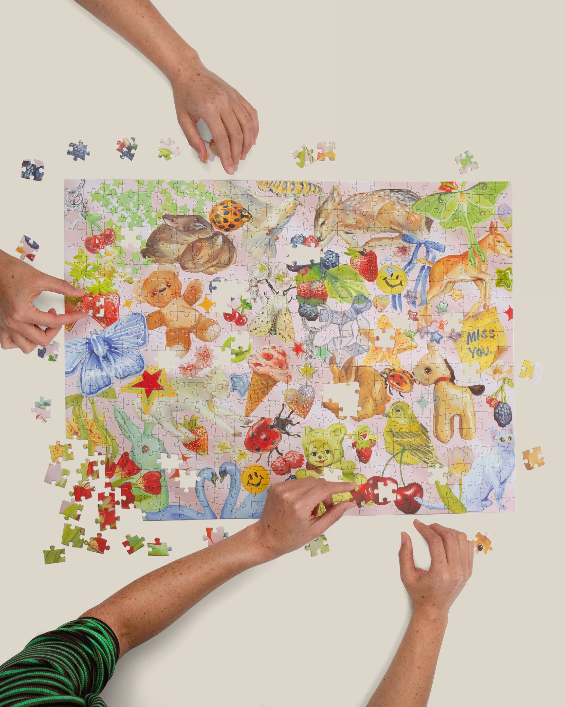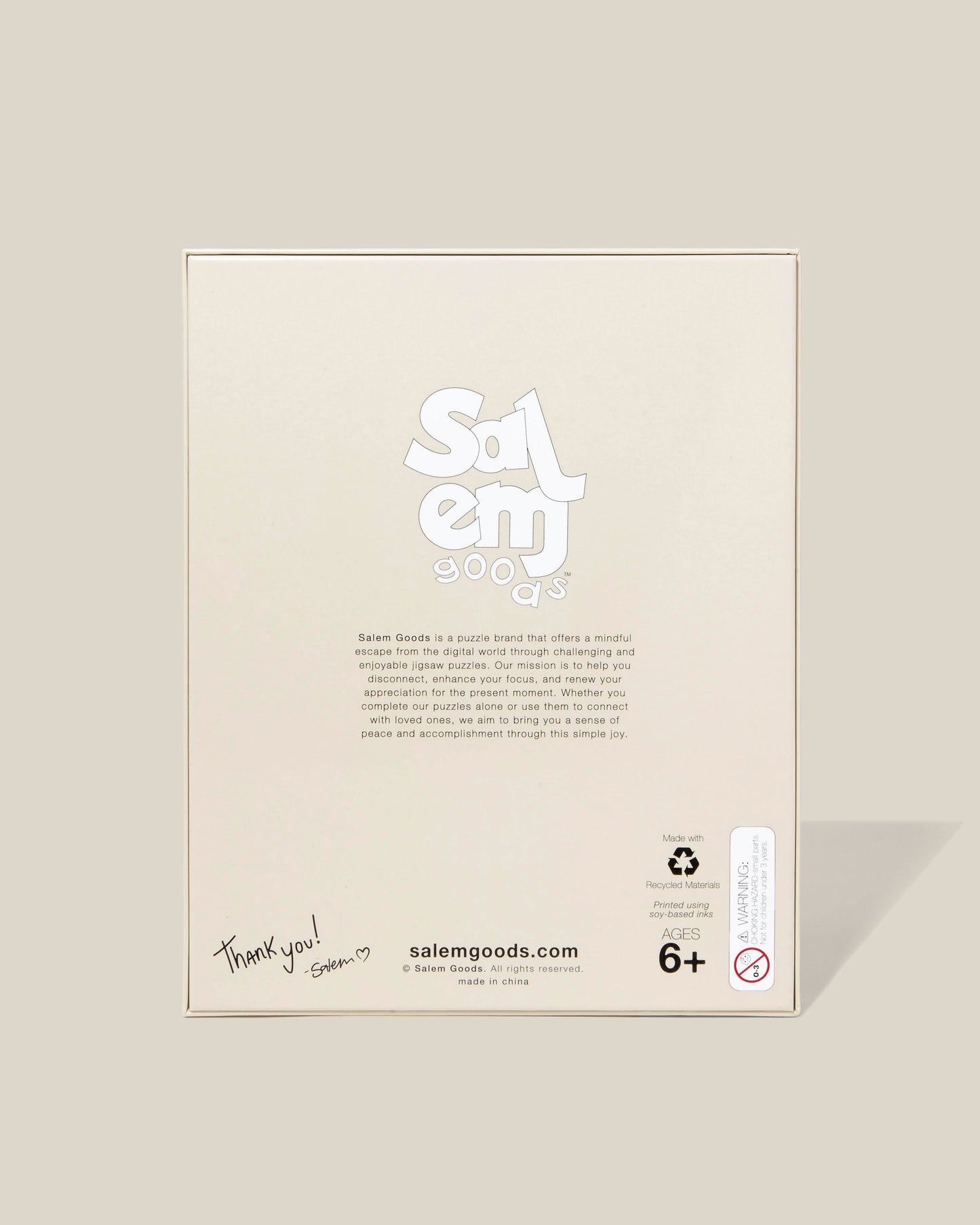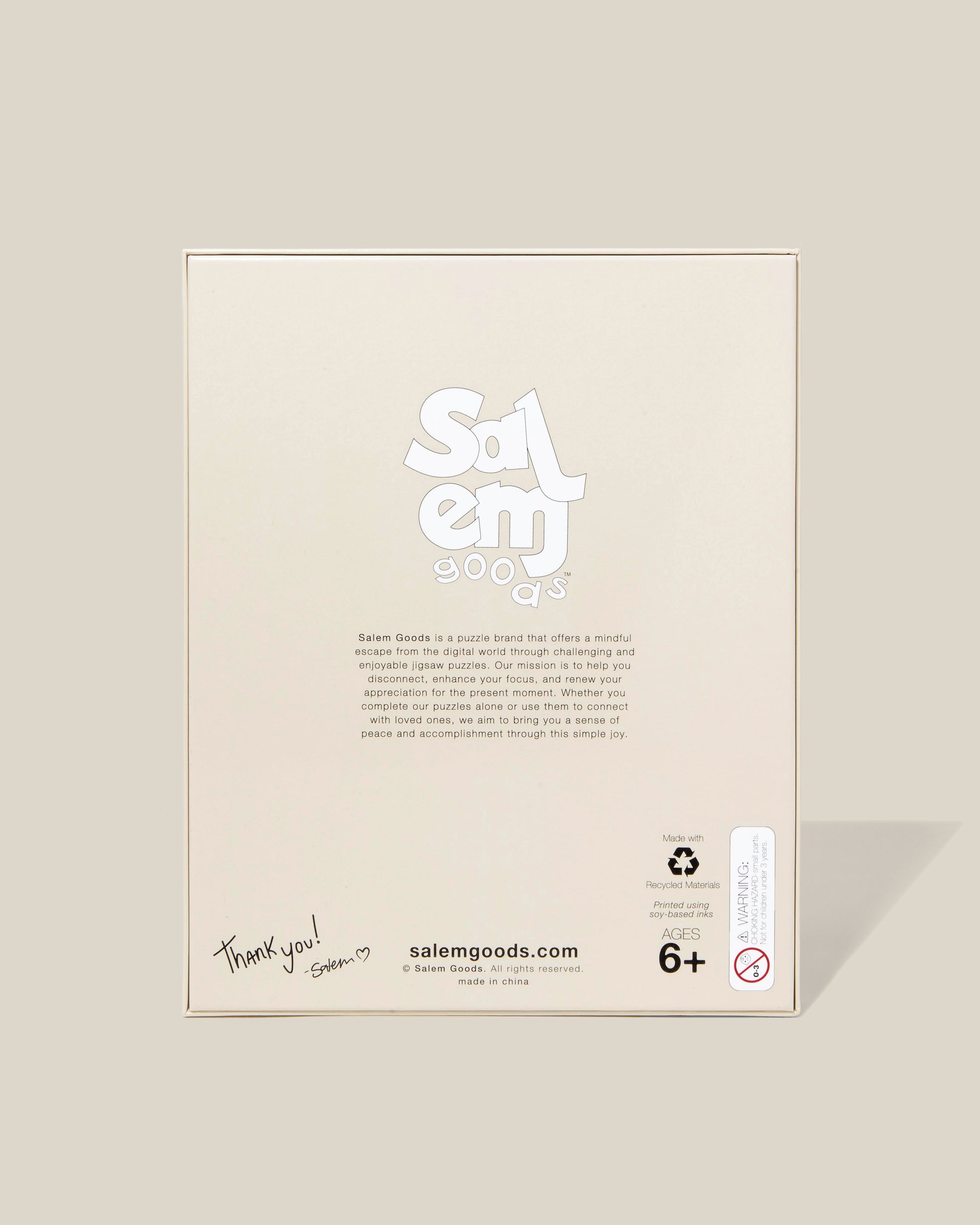 Sweet Solitude - Helps you step away from the noise and into a world of soft symbols and serene creatures — a mindful way to unwind, piece by piece. The puzzle artwork for Sweet Solitude was hand-painted by Serena Hughes.