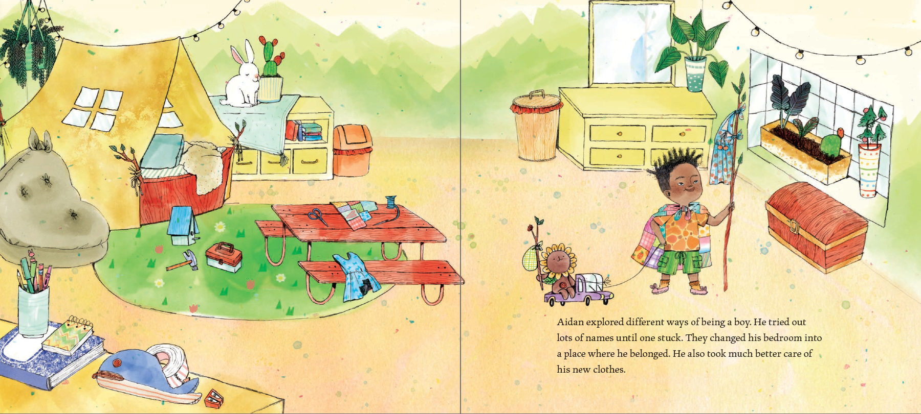 When Aidan was born, everyone thought he was a girl. His parents gave him a pretty name, his room looked like a girl's room, and he wore clothes that other girls liked wearing. After he realized he was a trans boy, Aidan and his parents fixed the parts of life that didn't fit anymore, and he settled happily into his new life.